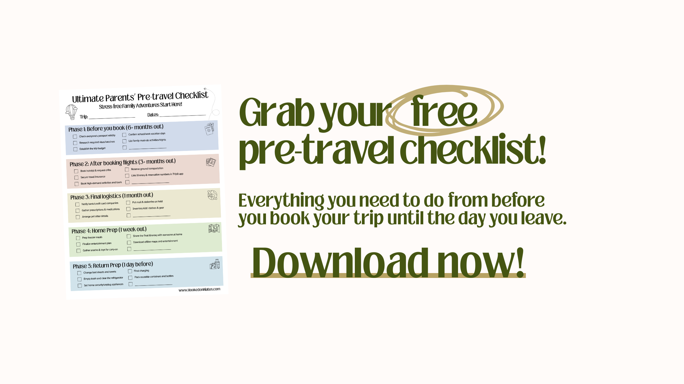 Enter your email below and I'll send you my ultimate parents' pre-travel checklist for FREE! You'll also receive our travel newsletter every other Wednesday.